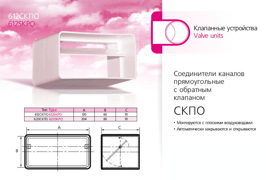 Соединитель прямоугольных воздуховодов с обратным клапаном 60х120