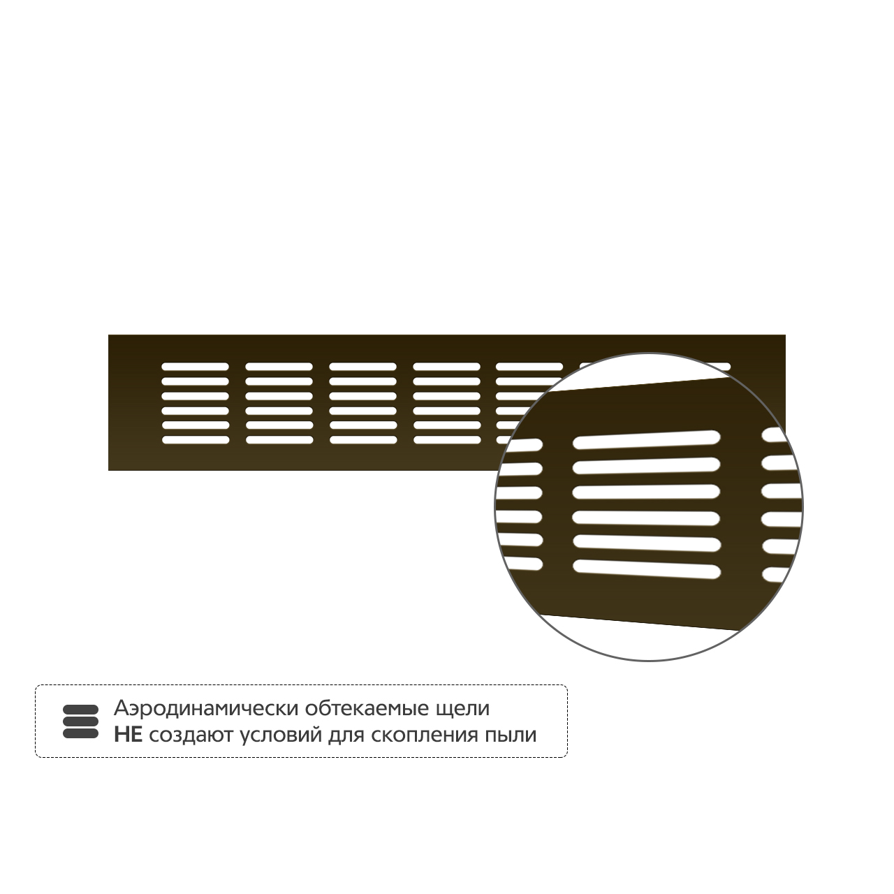 • Аэродинамически обтекаемые щели не создают условий для скопления пыли