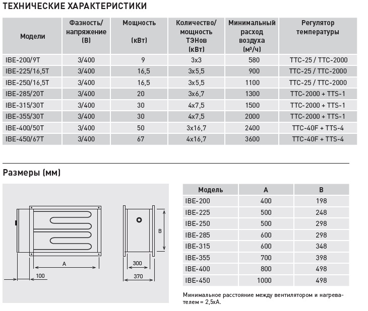 Прямоугольные электрические воздухонагреватели предназначены для установки на нагнетательной стороне вентилятора и подсоединения к трехфазной сети электропитания (3ф-400В-50Гц). Минимальная скорость воздушного потока должна быть выше 2 м/с. Электрические воздухонагреватели укомплектованы армированными нагревательными элементами и двумя термостатами защиты от перегрева с автоматическим и ручным перезапуском.