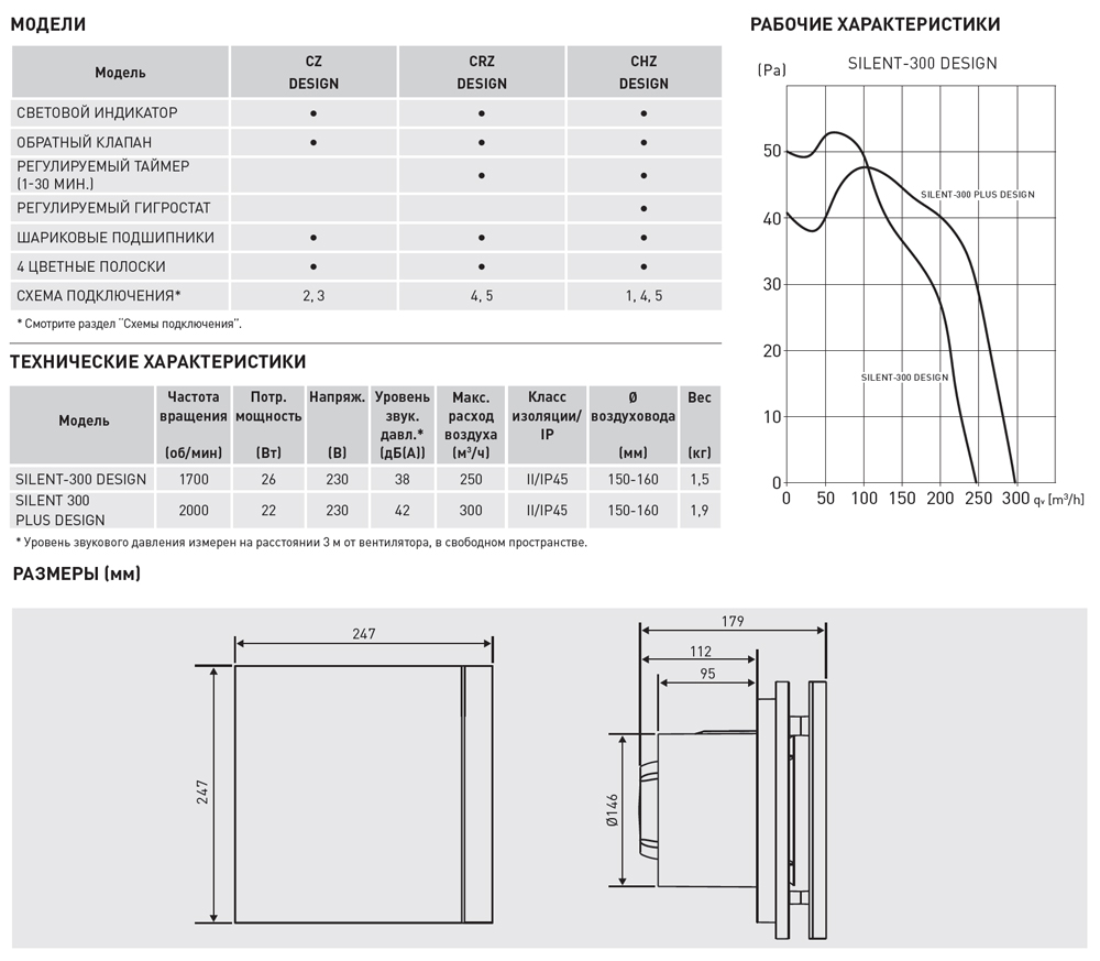Максимальный расход воздуха составляет 300 м3/ч. Вентиляторы предназначены для присоединения к воздуховодам диаметром 150-160 мм.