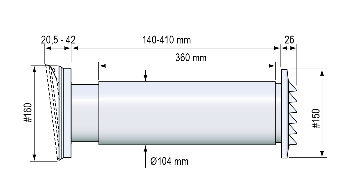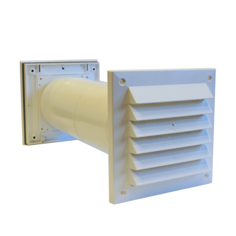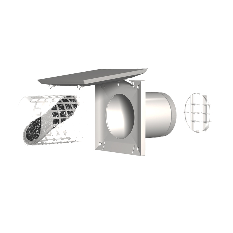 Клапан состоит из декоративной лицевой панели, трубы и наружной всепогодной решетки, фильтра грубой очистки воздуха. Труба, входящая в комплект, соединяющая внешнюю и лицевую решетки, может быть дополнена модулями - удлинителями, что позволяет собирать клапан для любой толщины стен. Лицевая часть клапана легко разбирается для обслуживания и замены фильтрующего элемента.