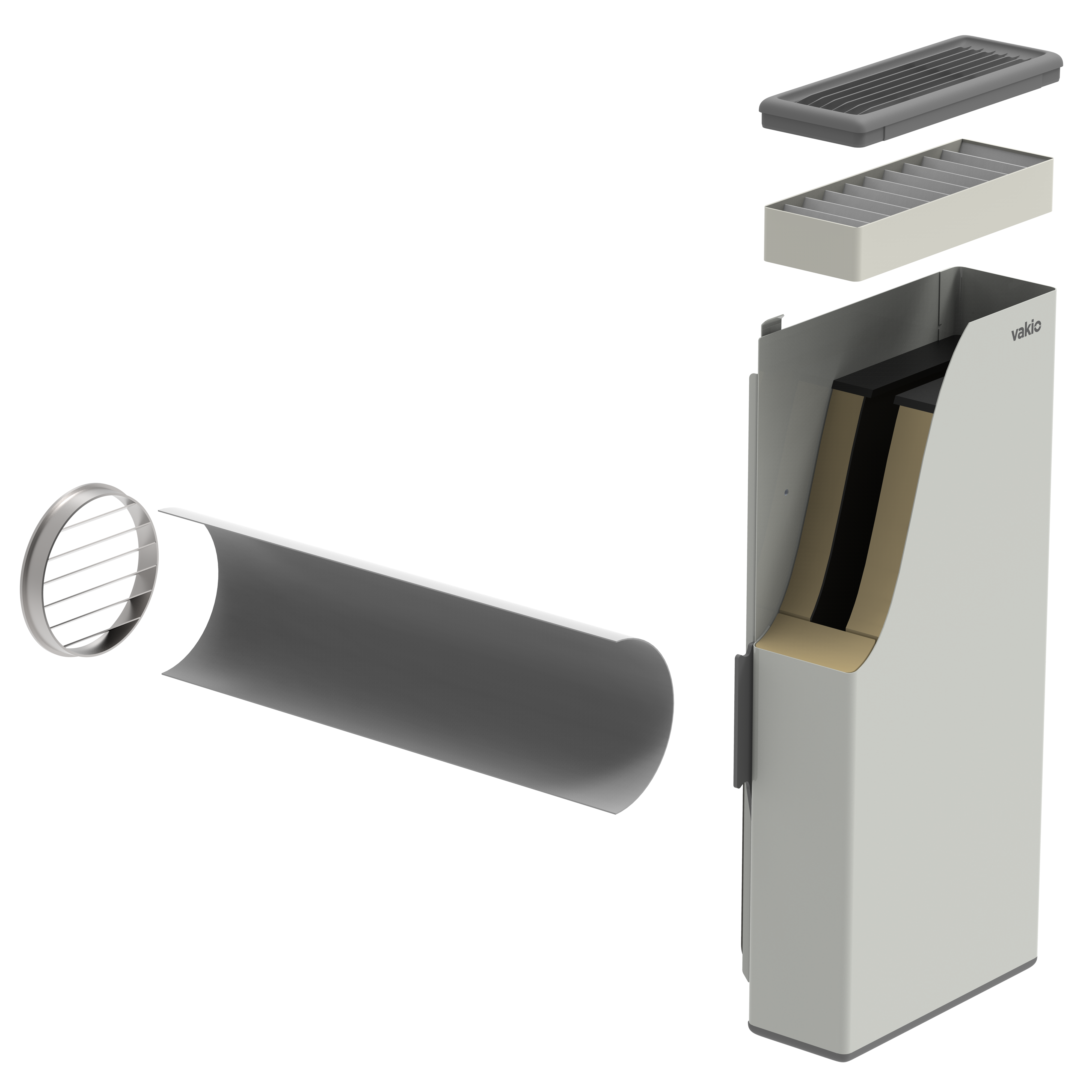 Приточный клапан Vakio (ВАКИО) КИВ предназначен для подачи наружного воздуха в помещения в системах вентиляции, преимущественно с принудительной вытяжкой. Объем приточного воздуха до 60 м3/ч. ВАКИО KIV обеспечивает защиту помещения от насекомых, шума и пыли, регулировку количества поступающего воздуха и проветривание при закрытых окнах.